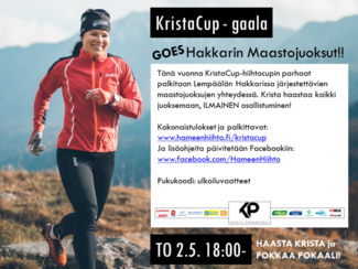 Ilmoittaudu jo maastojuoksukilpailuun ennakkoon ja valitse omaksi "seuraksi" ilmoittautumispalvelussa "KristaCup".